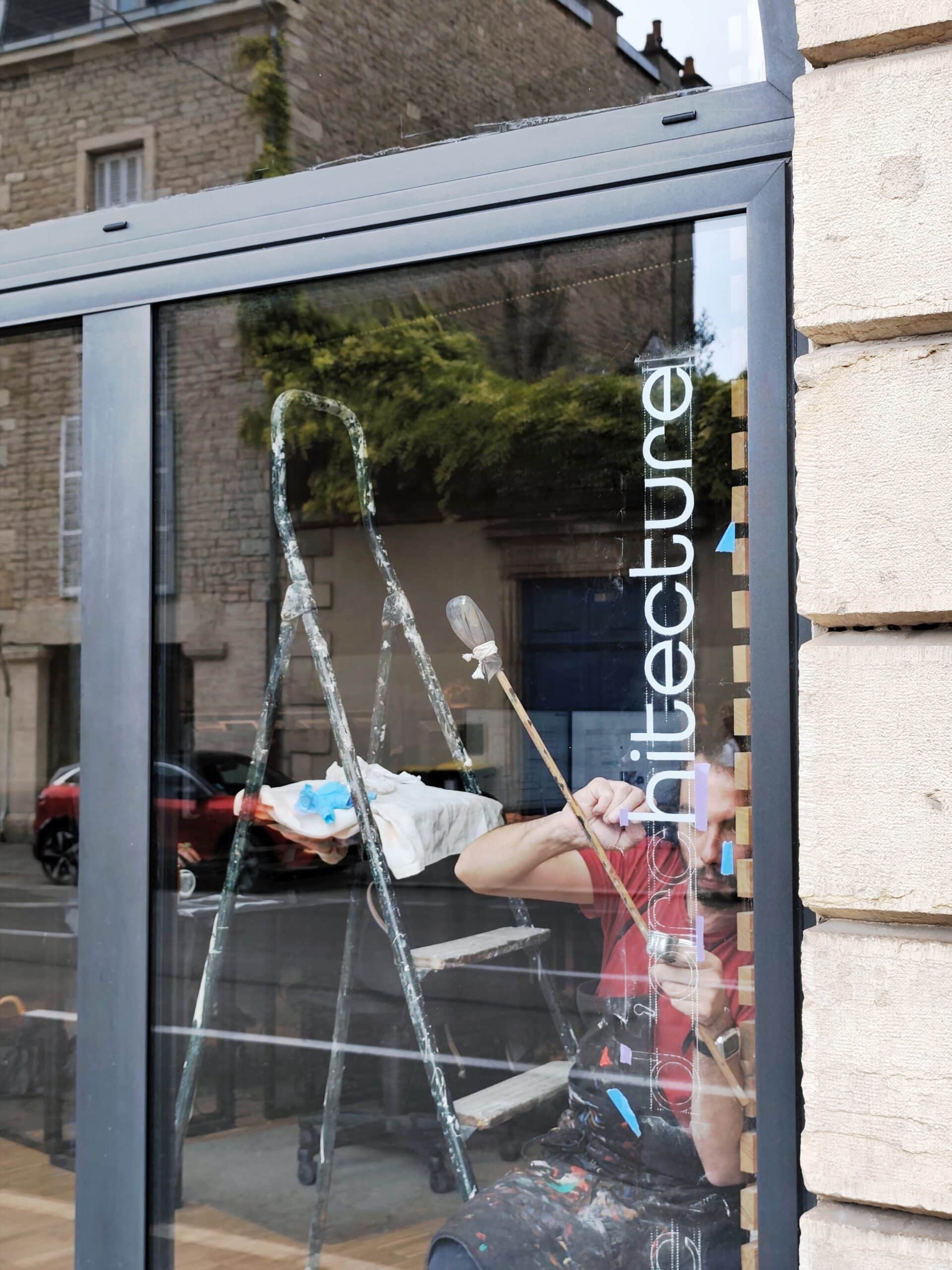Vitrine peinte à la main réalisée par Berny La Lettre.