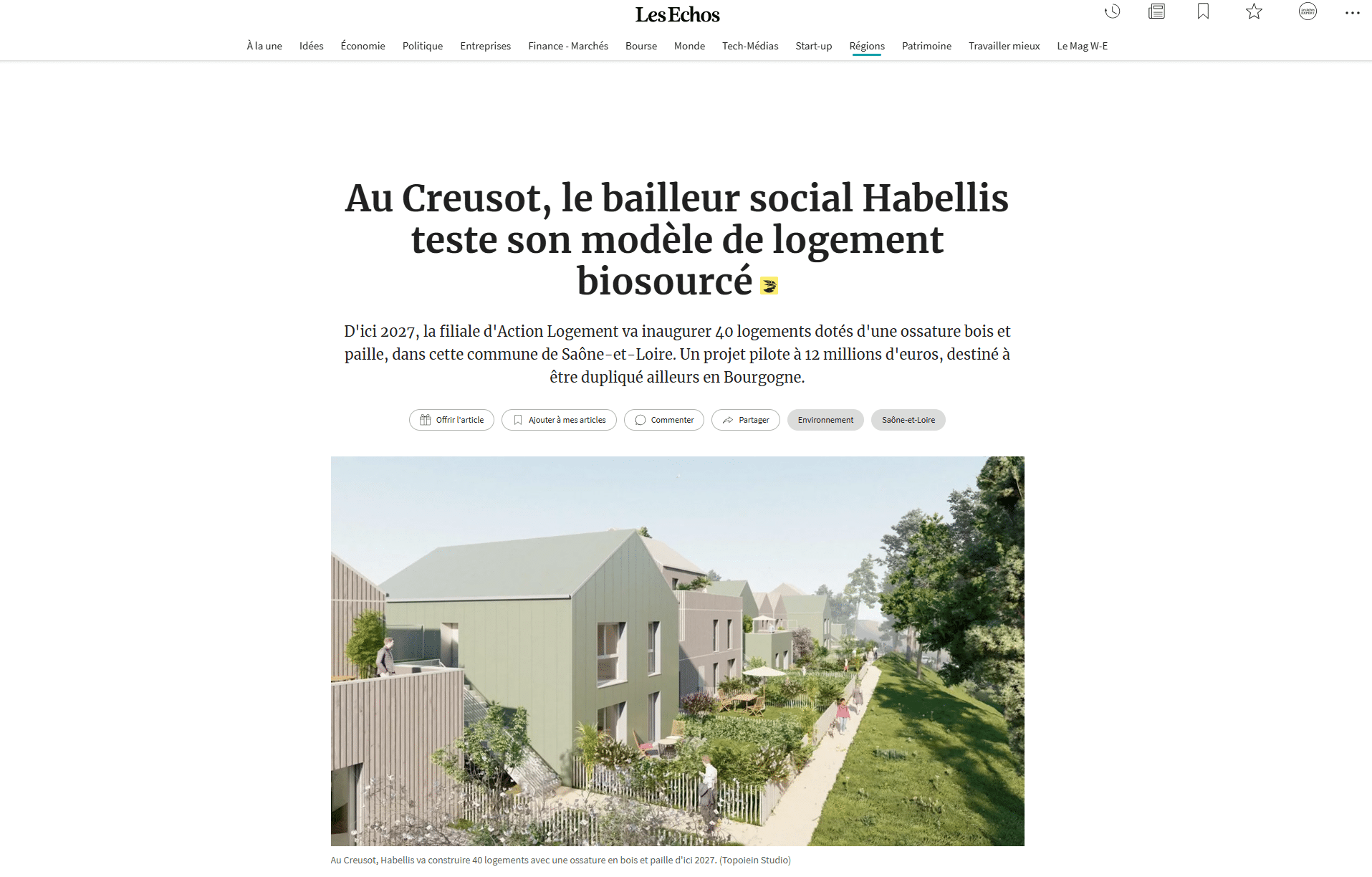 Construction de logements locatifs HABELLIS en bois et en paille au Creusot, la presse en parle :