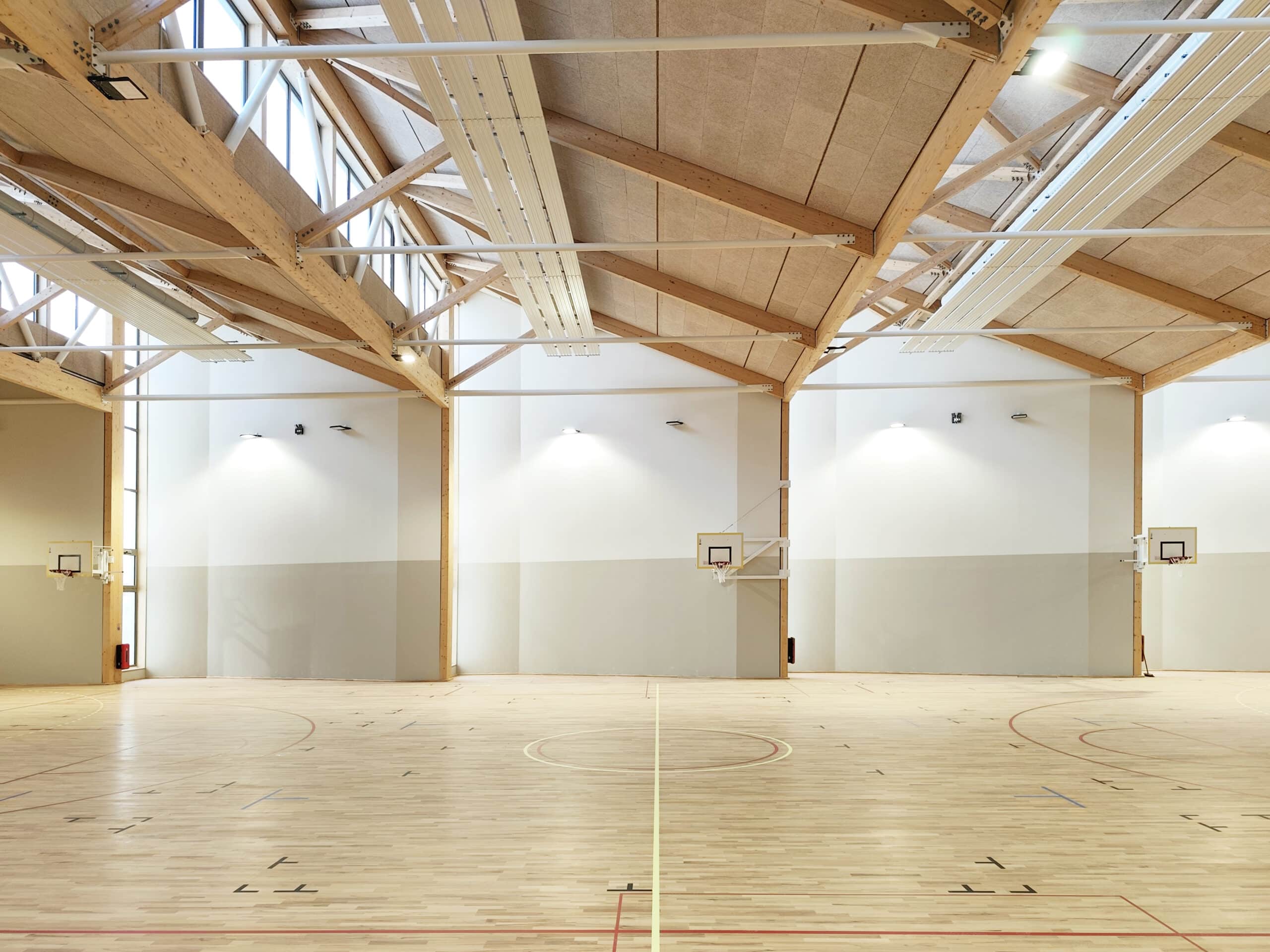 Ce gymnase prend place au cœur de l’éco-quartier de l’Arsenal, à l’entrée sud de la ville de Dijon. Il combine deux volumes, celui de la salle de boxe, du dojo et des vestiaires avec celui de la salle omnisport au sein d’une même enveloppe en ossature bois-paille de deux étages. Le choix des matériaux biosourcés avec l’utilisation notamment du bois, de la paille, de la ouate et de la laine bois est gage de confort pour les sportifs et permet d’atteindre le niveau E3C2.